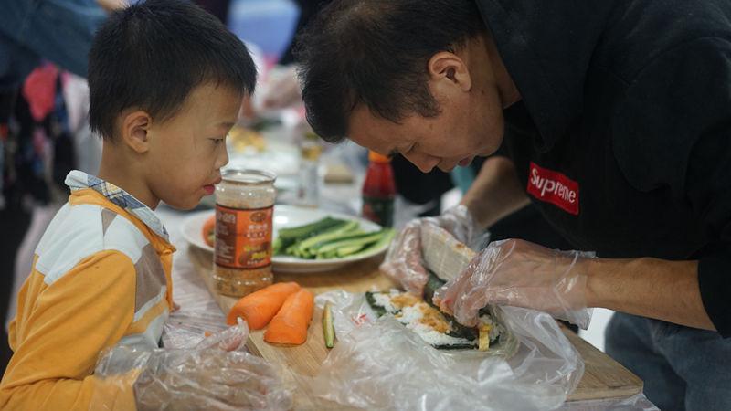 辛苦了这么久,大家都完成了自己的作品,各个吃饱喝足准备回家啦,我们的活动也接近了尾声。看起来每个人都对自己亲手做的寿司很满意呢~