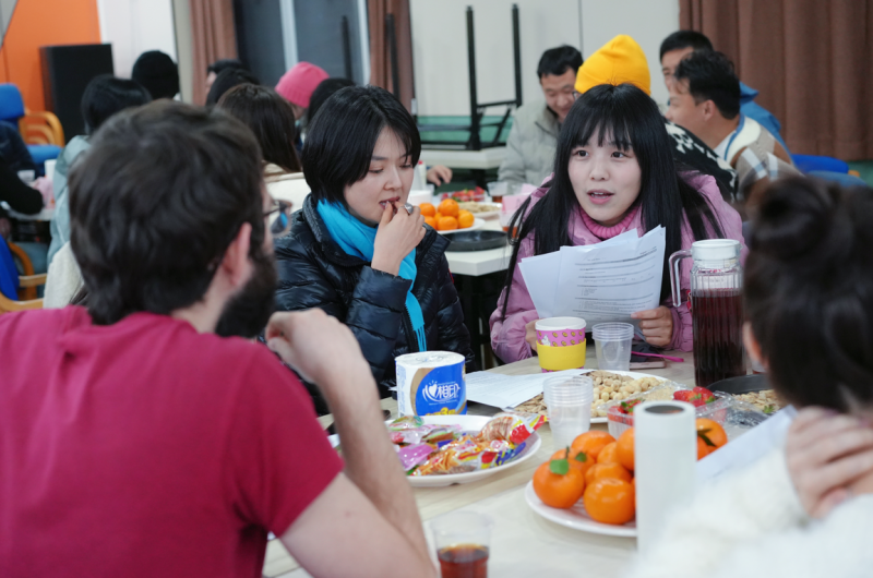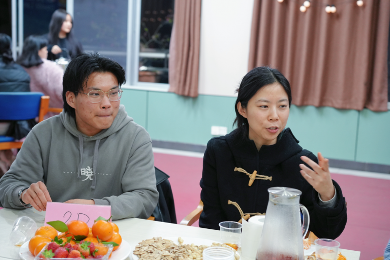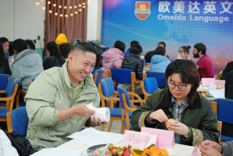 大家一边享用零食茶水,一边用英语交流,逐渐放下了紧张和拘束,气氛很快就活跃了起来。