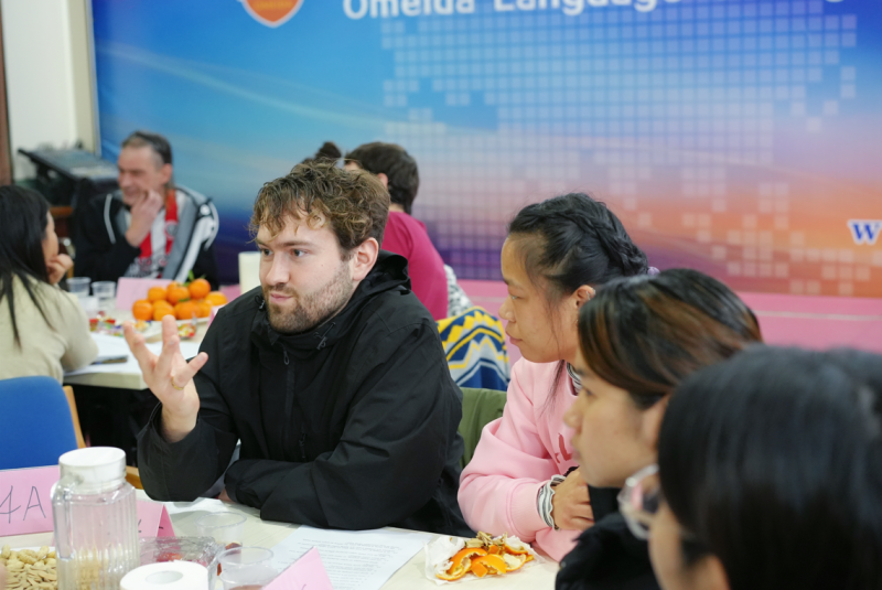 来自美国的Alessandro则分享了他的旅行见闻,大家听得津津有味,纷纷用英语分享了自己的学习经历和生活趣事。