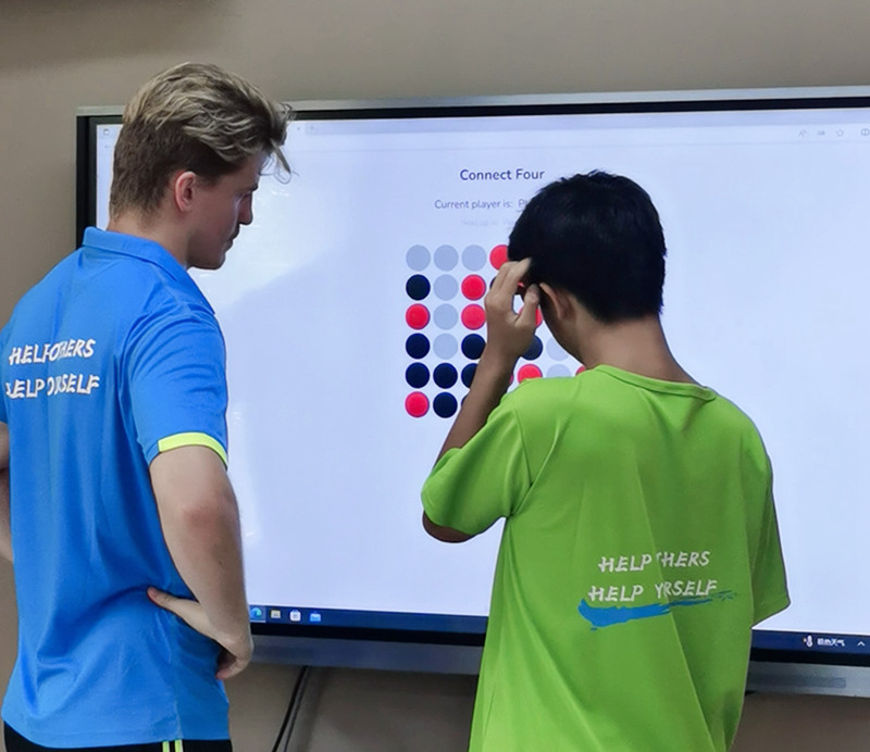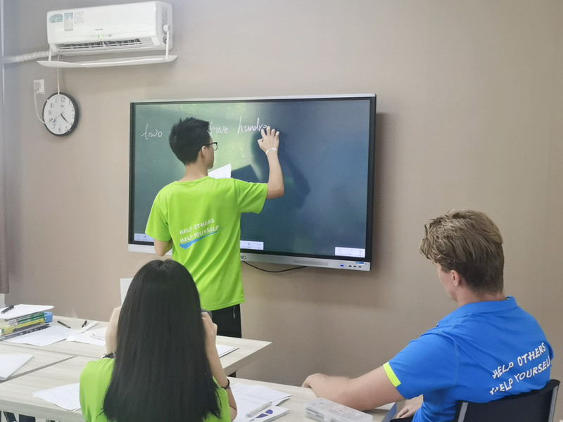 在一对一交流中,5C班的同学们也表现得愈发从容自在,和外国志愿者们聊天说地、十分投入!