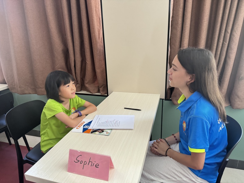 首先,Lucas小朋友与外教轻松地聊着各自的兴趣爱好和习惯,一人兴奋地说着,一人认真地听着,整场交流投机,笑声不断。