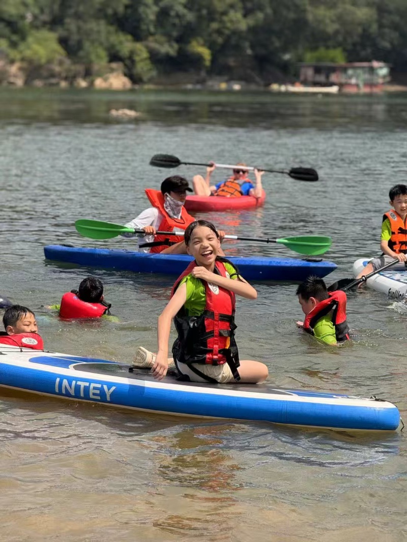 来到户外,同学们泛舟漓江,感受阳朔夏日的清凉,教练专业指导,伙伴们相互鼓励,第一次玩桨板的紧张一扫而光。