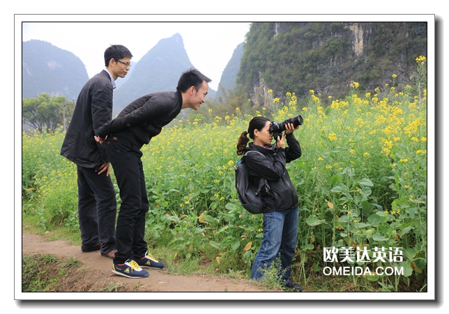 新生陆陆续续的报道让学校有了新面貌,新活力!新生报到的那天便有人问道,Ruth周末你们去的地方很美,那是哪里呀?我解释到那时我们阳朔最大的油菜花基地,周边的县城以及外省都有很多游客到此观赏,大家都很好奇的看着我描述这大片油菜花,心里已经激动不已。本来周末已经计划组织去兴坪古镇,但是看到大家的热情,我们就定在周中去吧~ 阳朔是有名的旅游胜地,这是无需置疑的。大家来到阳朔学习这段时间把阳朔玩个遍,就相当于省了这个旅游费啦呀,欧美达将提供最好的服务,最精华的旅游路线,最美的拍照造型......当然我在这里只是介绍周末活动,在欧美达的周末提倡以积极的人生态度去享受生活。为了迎接新生的到来,我们特意再次组织第二波看油菜花队伍,看到美丽的花儿,会让人更美丽,更幸福,这样幸福的事我们会继续做下去。也就这样我们才会发现更多幸福的人出现哟~