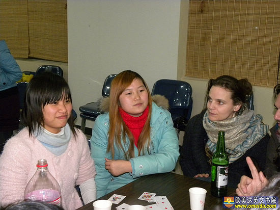 平易近人的Peggy,在学校的social night活动中,正在跟学员交流。