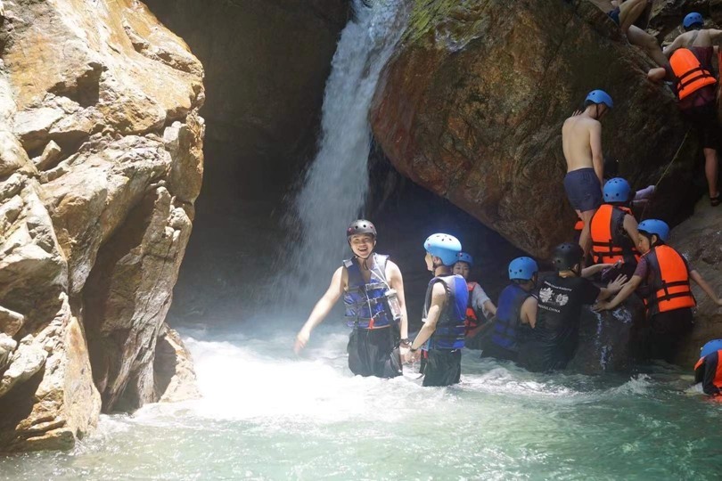 山风徐徐抚人脸,清泉清澈透心凉,巨岩峭壁、峡谷瀑布、青山绿水,风光让人迷醉。或蹚水而行、或缘绳攀登、腾跃在山涧中,行走在风景里,没有什么比在夏日来一场溯溪水上狂欢更赞的户外运动了。